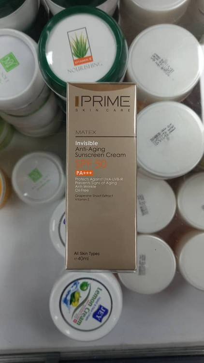 کرم ضد آفتاب جوان کننده پریم فاقد چربی فاقد رنگ مناسب انواع پوست این محصول حاوی عصاره درخت مو است که عملکرد ۲مرحله ای ضدچروک آن از نظر کلینیکی به اثبات رسیده و علاوه بر این ویتامینE و مواد مرطوب کننده موجود در این کرم رطوبت لازم را به پوست می رساند.