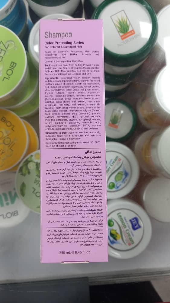سایر توضیحات: شامپو مخصوص موهای رنگ شده و آسیب دیده لافارر محافظت از رنگ مو می کند جلوگیری از ایجاد گره و حفظ ساختار مو می شود و باعث افزایش درخشندگی و حالت پذیری تارهای مو می شود.