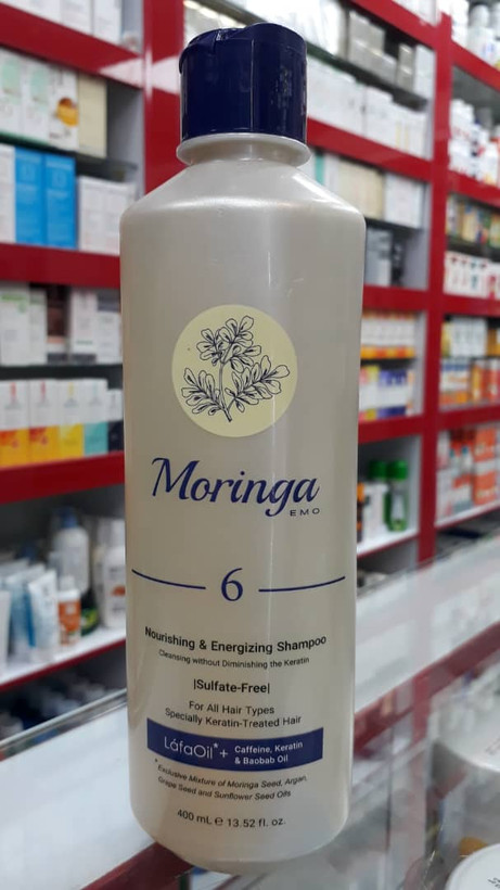 شامپو مغذی و انرژی بخش مورینگا امو، مناسب انواع مو به ویژه کراتینه،بدون سولفات