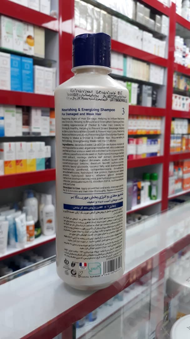 شامپو مغذی و انرژی بخش مورینگا امو، مناسب موهای آسیب دیده و ضعیف