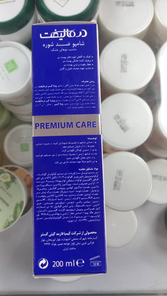 مناسب برایموهای خشکسایر توضیحاتشامپو ضد شوره درمالیفت مناسب موهای خشک کمک به کاهش شوره های پوست سر برطرف کننده خشکی پوست سر مناسب جهت مصرف بانوان و آقایانکشور مبدا برندایرانحجم۲۰۰میل