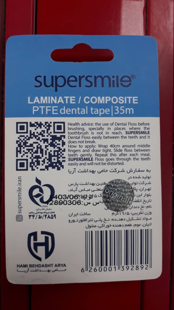 نخ دندان سوپر اسمایل مخصوص دندان های لمینت و کامپوزیت، ۳۵ متر