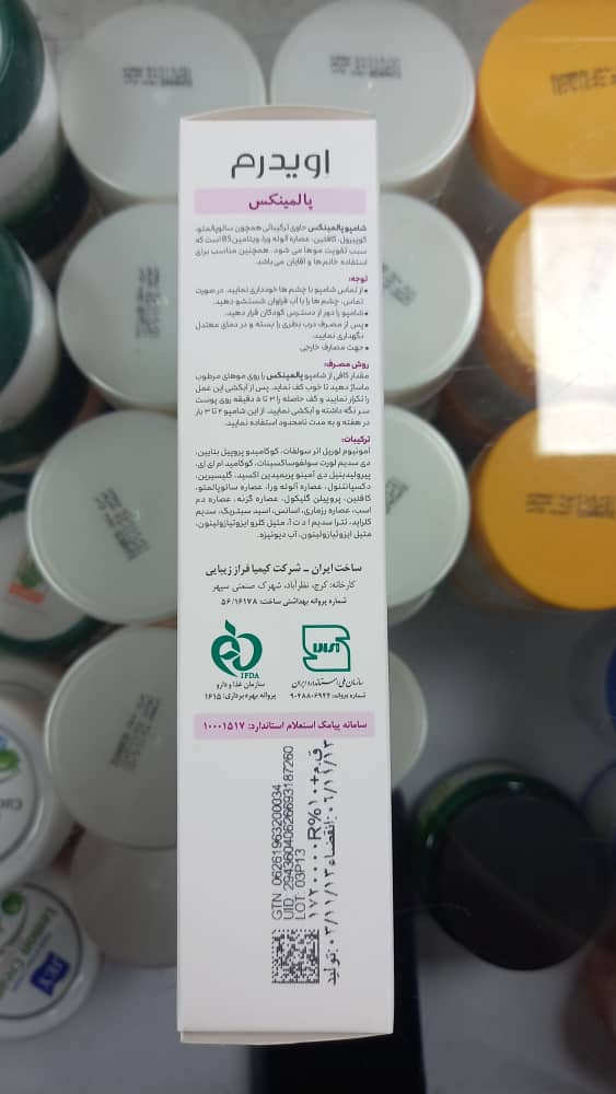 شامپو تقویت کننده مو پالمینکس اویدرم مناسب انواع مو این شامپو حاوی ترکیباتی همچون کافئین،عصاره آلوئه ورا ،ویتامین B5است که سبب تقویت موها می شود.