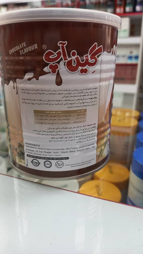 سایر توضیحاتپودر گین آپ ۳۰۰گرمی باطعم شکلات کمک به افزایش وزن کودکان بالای دوسال