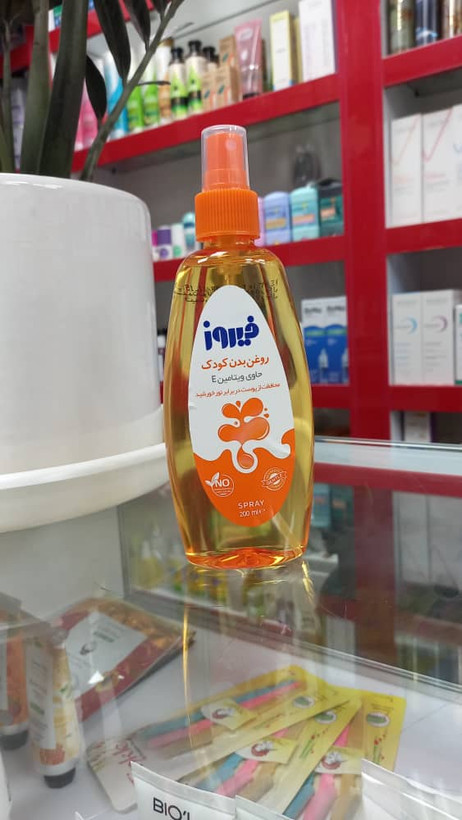 سایر توضیحات: روغن بدن کودک فیروز 200میل حاوی ویتامین E محافظت از پوست در برار نور خورشید