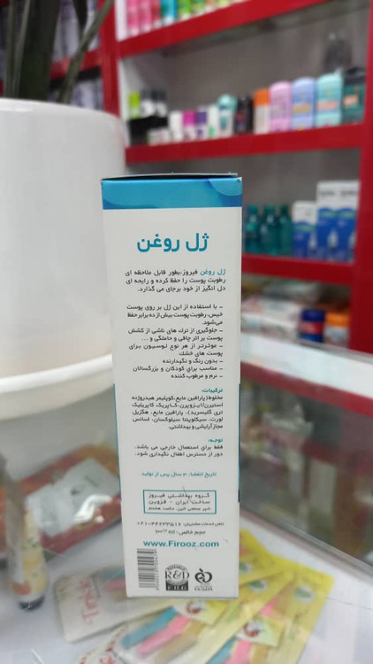سایر توضیحات: ژل روغن فیروز ۱۰۰میل مناسب برای کودکان و بزرگسالان نرم و مرطوب کننده جلوگیری از ترک های ناشی از کشش پوست بر اثر چاقی و حاملگی و... ژل روغن فیروز،بطور قابل ملاحظه ای رطوبت پوست را حفظ کرده و رایحه ای دل انگیز از خود برجای می گذارد.