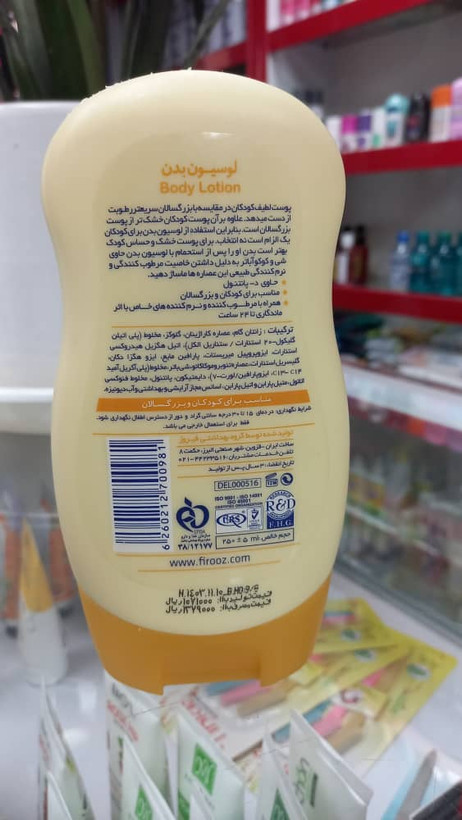 سایر توضیحات: لوسیون مرطوب کننده بدن فیروز حاوی شی و کوکوآ باتر ۲۵۰میل حاوی دکسپانتنول مناسب برای کودکان و بزرگسالان